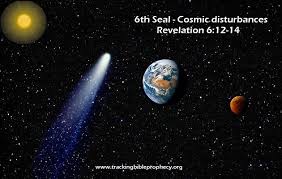 "I watched as he opened the sixth seal. There was a great earthquake. The sun turned black like sackcloth made of goat hair, the whole moon turned blood red, and the stars in the sky fell to earth, as figs drop from a fig tree when shaken by a strong wind. The heavens receded like a scroll being rolled up, and every mountain and island was removed from its place." - Revelation 6:12-14